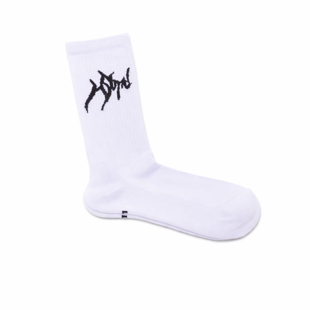 WHITE SOCKS WITH BLACK LOGO