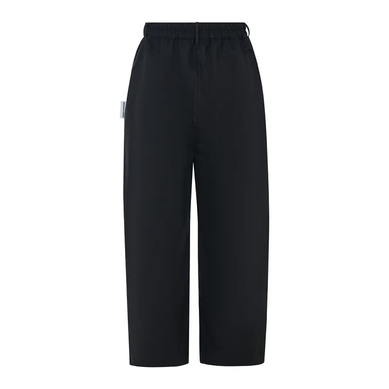 Tailored black trousers are cut to a relaxed fit with a mid waist, wide leg and long length. Crafted from a cotton, complete with an elasticated waistband.